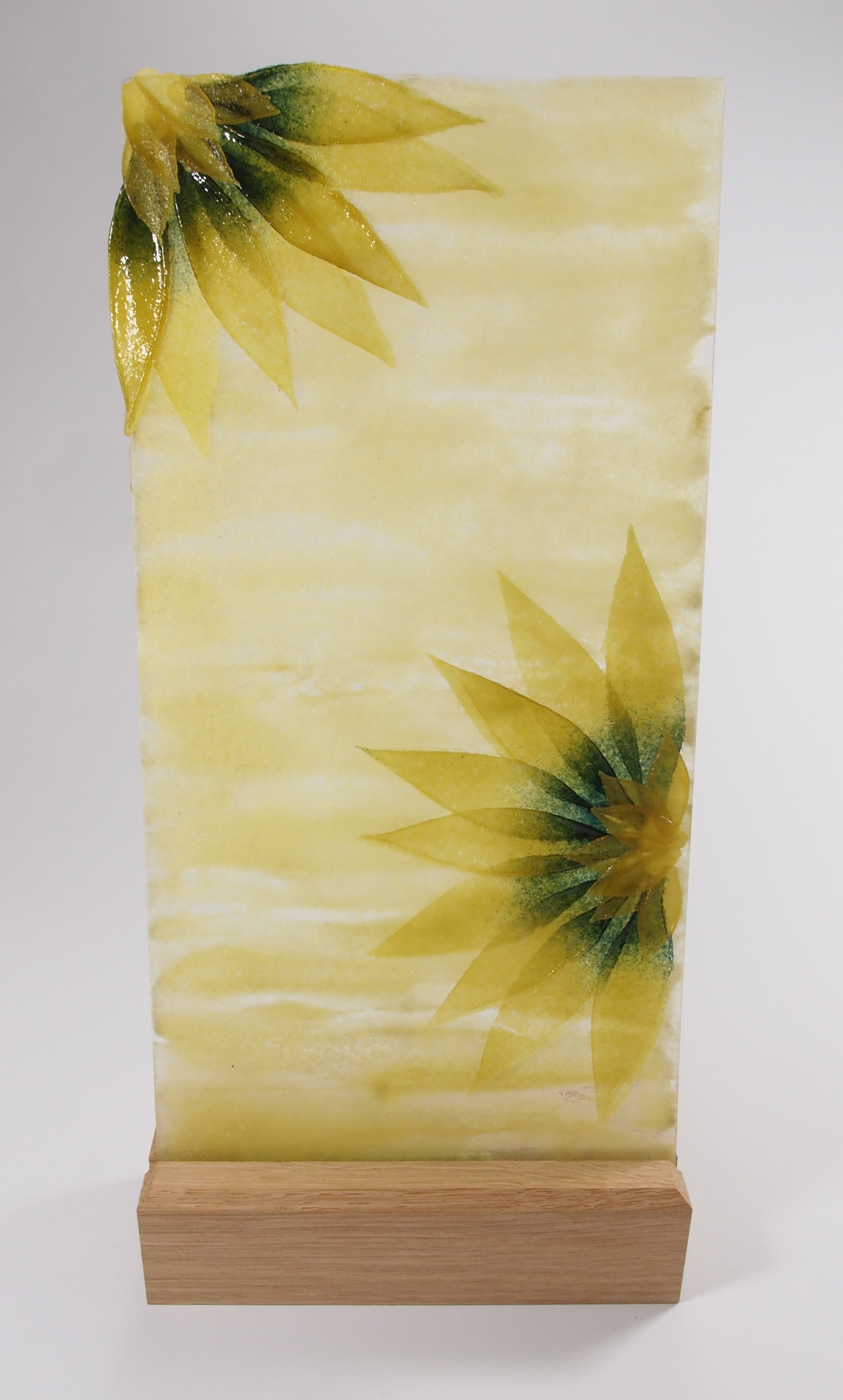 Working with my daughter, Karen, we handcraft beautiful botanical glass art. We are mainly self-taught using a few good books and attending workshops run by a handful of amazing artists willing to share their knowledge: Mikyoung Jung, Silvia Levenson, Rudi Gritsch and Karl Harron, to name a few. Go on, have a peek at their work, they all have different ways of working with glass. A good way to describe how we feel when working with glass is enjoyment in focus. You so often loose yourself when forming ideas for new pieces. Making sample after sample until we can get the feelings attached to our ideas into the glass in front of us. This repetitiveness calms the mind, slowly reducing the vast noise of an idea into a simple beautiful note. Our long-time love of gardening has greatly influenced our work - Karen has a very productive vegetable plot at home; and I have worked as a professional gardener for 25 years and I still enjoy every minute working with my customers. Gardens never stop evolving and we hope our glass never does either. Our roots are in Lancashire, then we ventured to the middle east for several years and I have now happily settled back into the UK. Karen with her partner and son in Lincolnshire, I with my husband in Oxfordshire. I have a studio in Marcham, a lovely village that it is an expanding as they all are, but that is managing to keep that valuable community spirit. View more posts