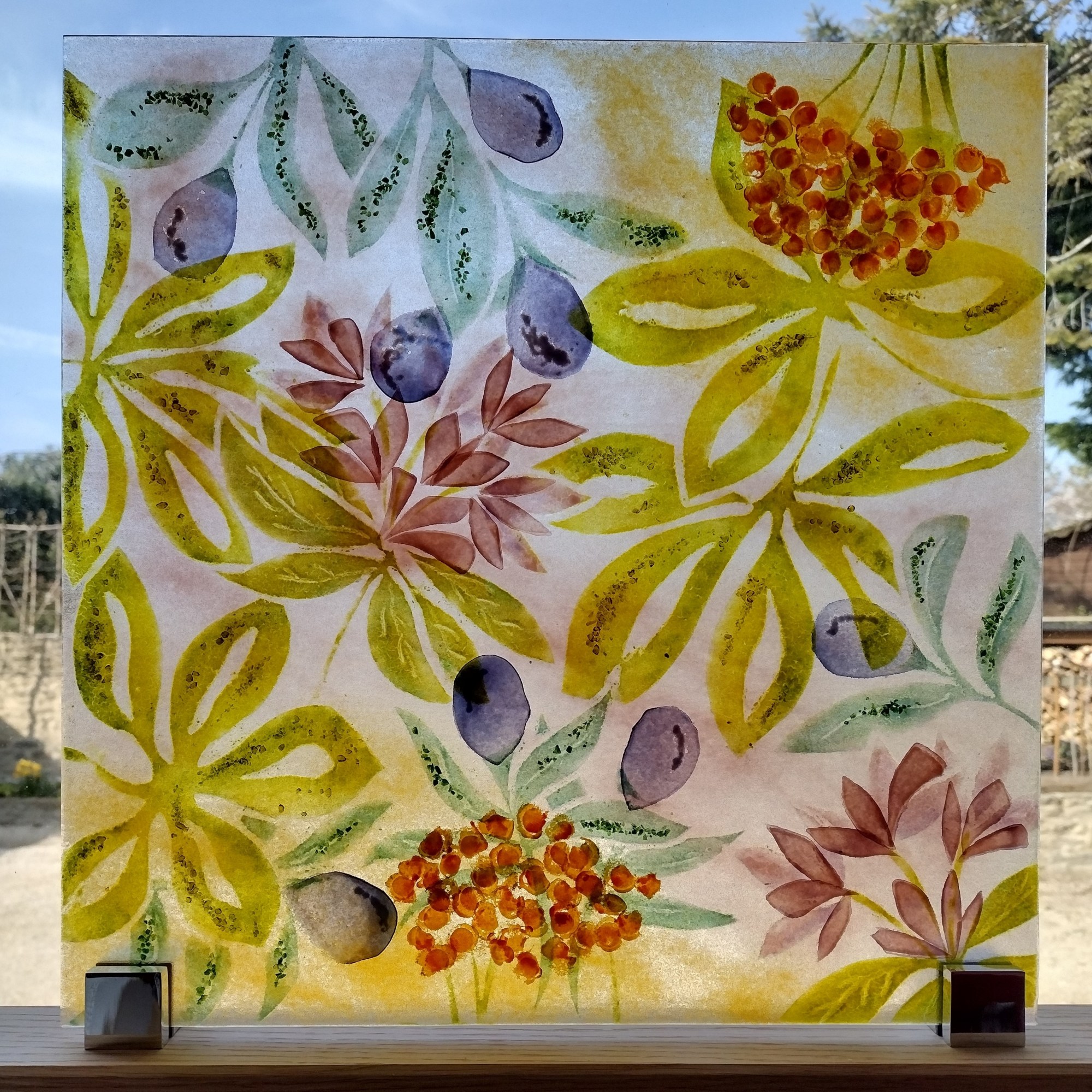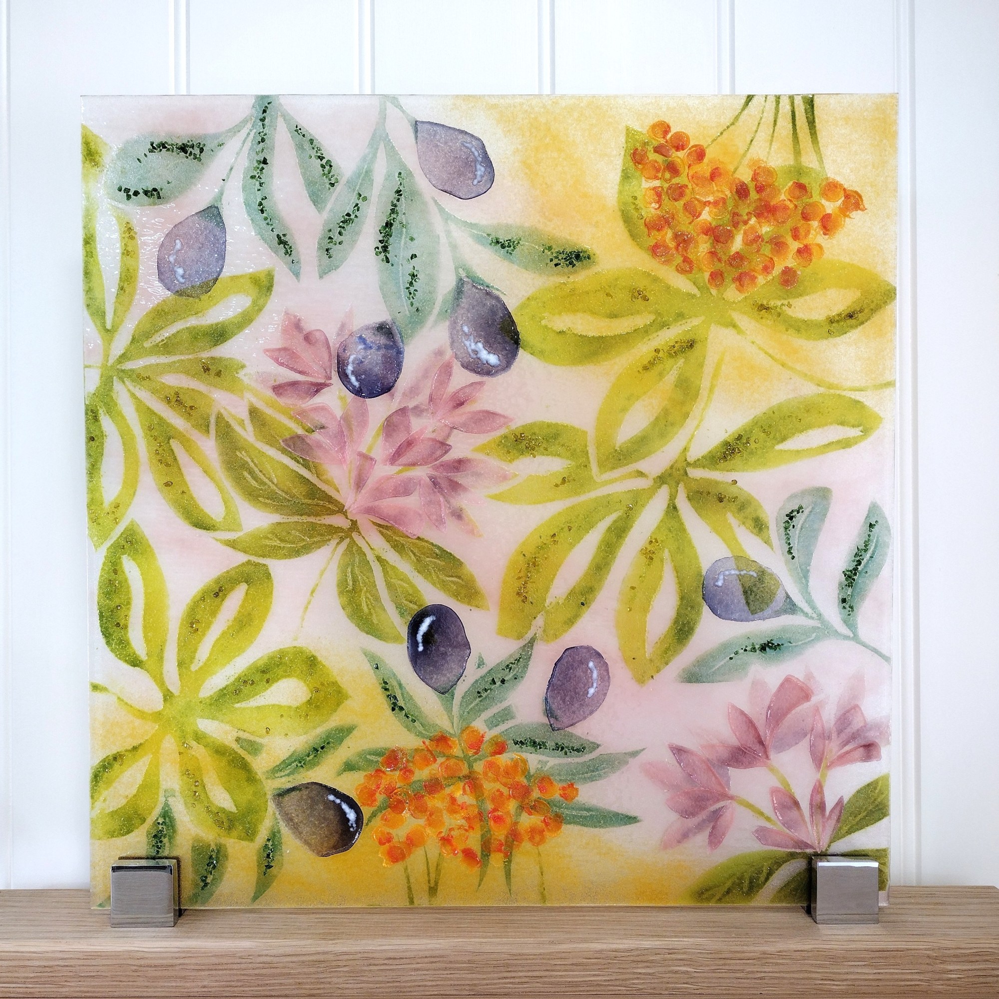 This gorgeous flower panel is full of textured detailing. It has been designed to look great from the front or back so perfect for a window. She is shown mounted on a wooden base, although it still looks fabulous on a wall too with brushed silver stand-offs.